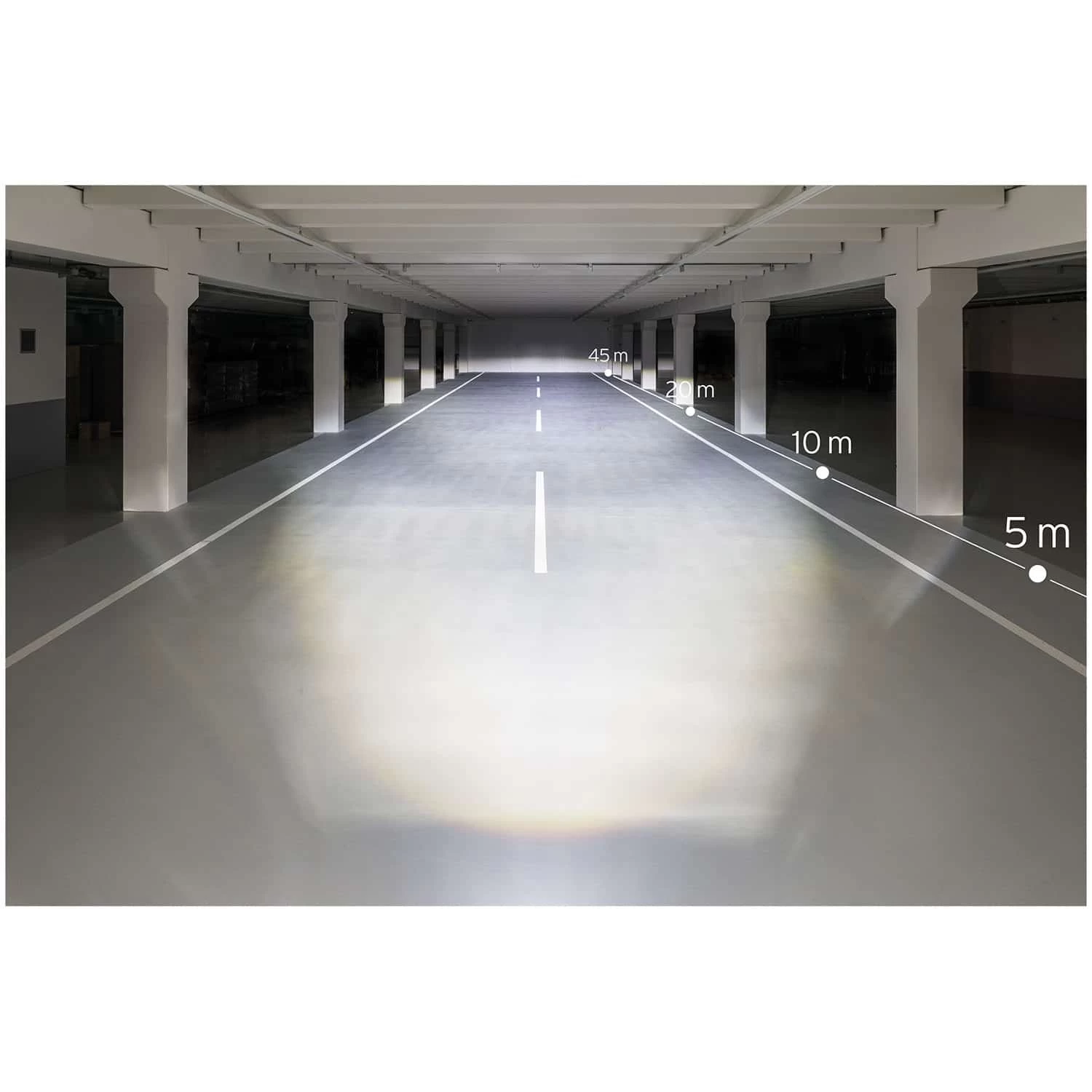 mit 150 Lux entwickelt. Dadurch wird die Fahrbahn mit einem breiten, weiten und