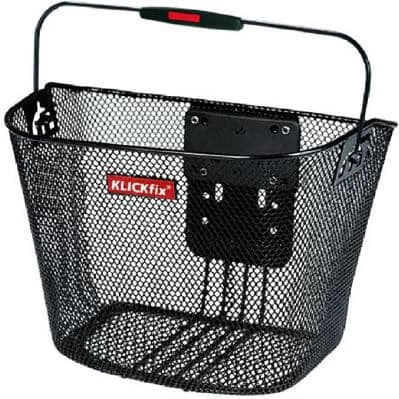 Hohe Bauform mit feinmaschiger Struktur und Tragebügel. Die Adapterplatte auf der Korbrückwand ist höhenverstellbar. So lässt sich die Korbposition exakt ans Rad anpassen und es bleibt genügend Raum für den Scheinwerfer. Keine zusätzliche Abstützung zur Gabel oder Steuerrohr notwendig.