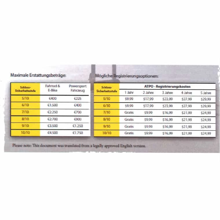 Registrierung können Sie umgehend die Vorteile des ATPO-Programms nutzen. - Im Diebstahlfall erstattet Kryptonite dem Eigentümer auf Grundlage der