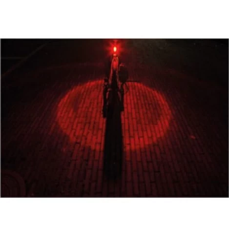 Das Bike-Rücklicht mit Bodenausleuchtung ist seitlich