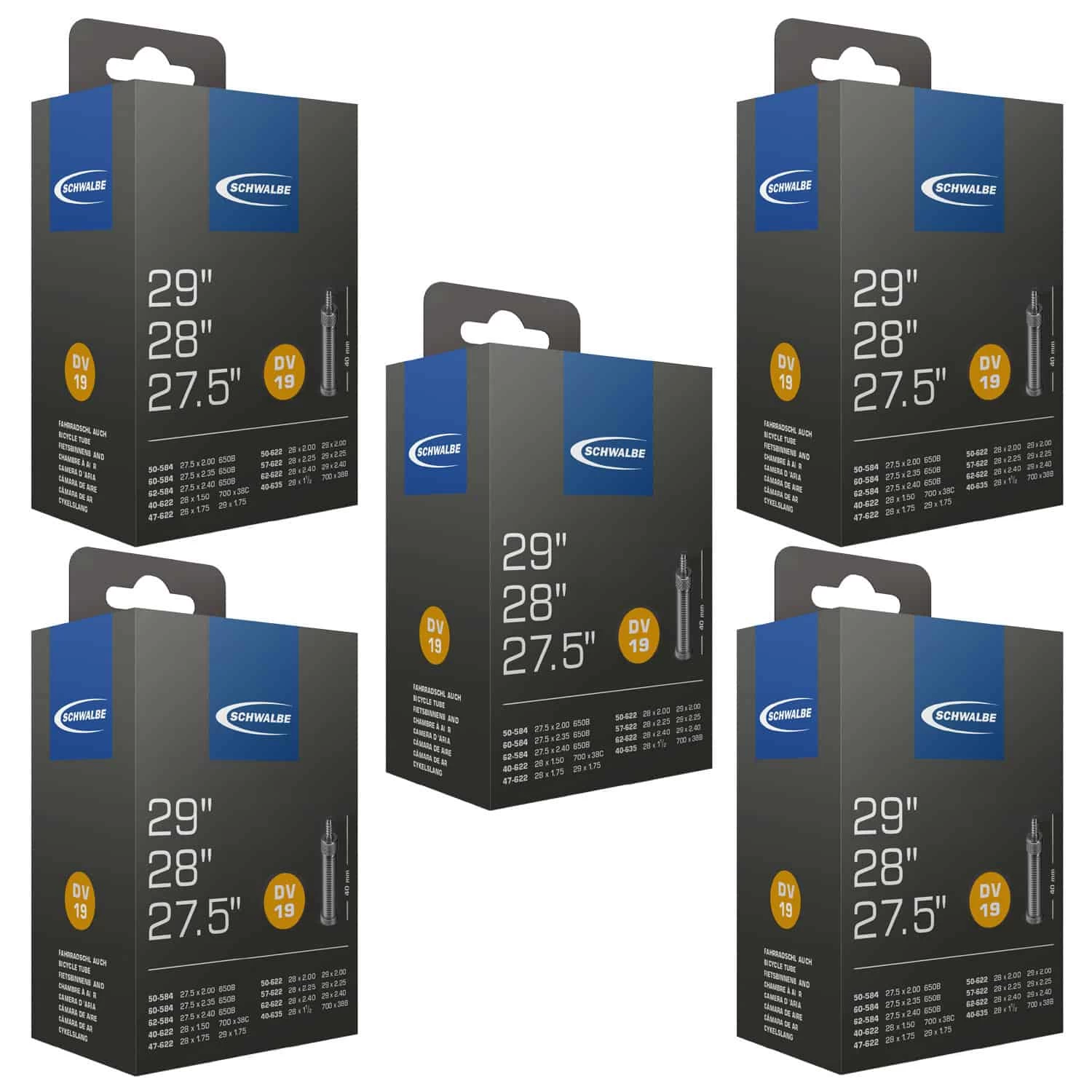 - Lieferumfang: 5x Fahrrad-Schlauch Schwalbe DV 19