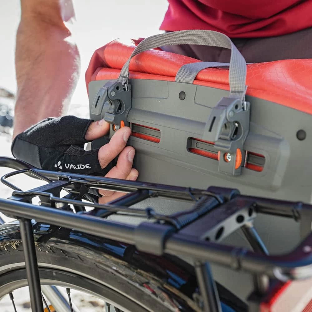 Die Fahrradtasche von Vaude lässt sich dank des hochwertigen QMR-Befestigungssystem leicht am Fahrrad anbringen und wieder