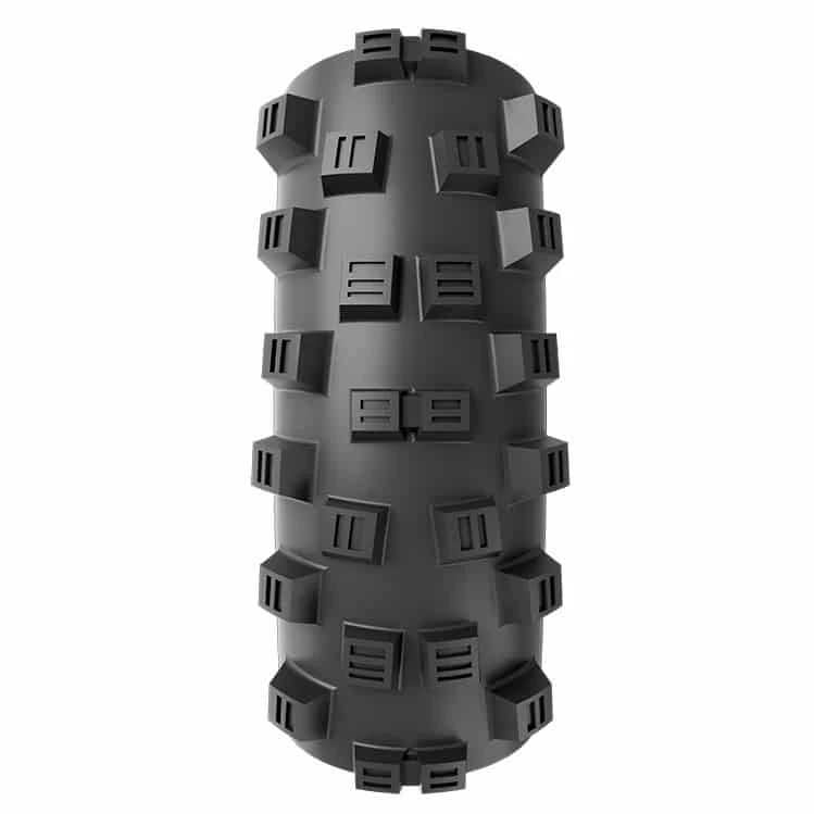 Mit seinen Moto-Block-Stollen pflügt der Mountainbike-Reifen